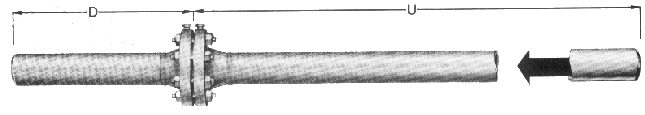 Standard lengths for meter tubes are 15 D for upstream and 7 D for downstream, where D is inside diameter of pipe, but any length can be supplied to fit customers' requirements.